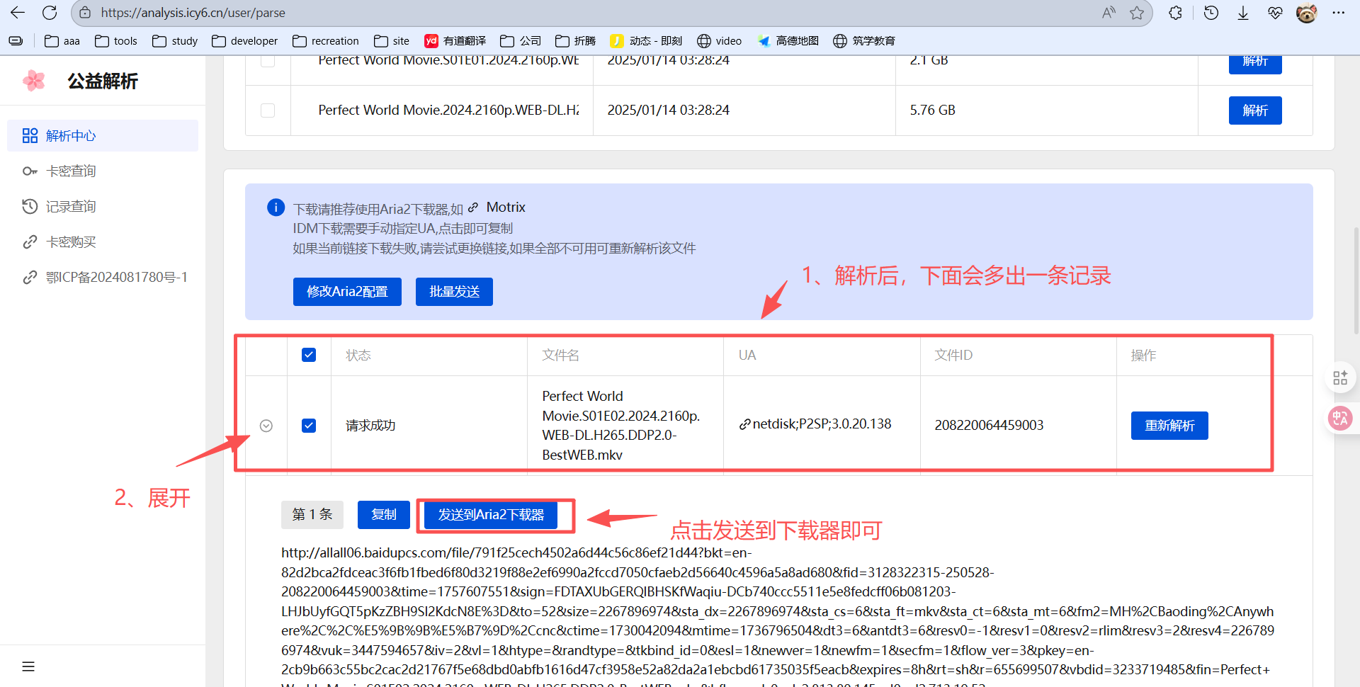 2. 获取直链并推送任务